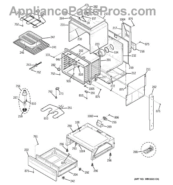 The Rear Door Support is an OEM replacement part for GE ranges. Located at the base of the range, this bracket provides weight-bearing support for the lower oven drawer. It facilitates smooth extension and retraction of the drawer. Causes of faulty support can include cracks or fractures developing over extended use, worn joints unable to sustain drawer weight, or misalignment from repeated opening/closing stress. Symptoms of a bad support include: