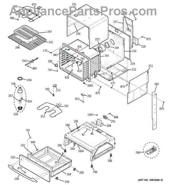 The Broiler Assembly is an OEM replacement part for GE range. Located inside the oven, it houses the heating elements responsible for the broil cooking function. Causes of a bad broiler assembly can include cracked or burnt-out heating elements that no longer ignite, damage from accidentally being cleaned with abrasive chemicals, or warping of metal components from overheating. Symptoms of a bad broiler assembly include: