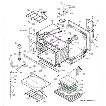 Left side hinge assembly for oven doors. Replaces broken, cracked, or worn hinges that prevent proper door opening and closing. Direct fit component.