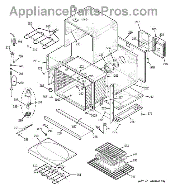 The Broiler Assembly is an OEM replacement part for GE range. Located inside the oven, it houses the heating elements responsible for the broil cooking function. Causes of a bad broiler assembly can include cracked or burnt-out heating elements that no longer ignite, damage from accidentally being cleaned with abrasive chemicals, or warping of metal components from overheating. Symptoms of a bad broiler assembly include: