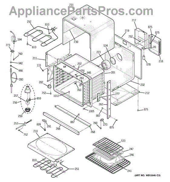 The Broiler Assembly is an OEM replacement part for GE range. Located inside the oven, it houses the heating elements responsible for the broil cooking function. Causes of a bad broiler assembly can include cracked or burnt-out heating elements that no longer ignite, damage from accidentally being cleaned with abrasive chemicals, or warping of metal components from overheating. Symptoms of a bad broiler assembly include: