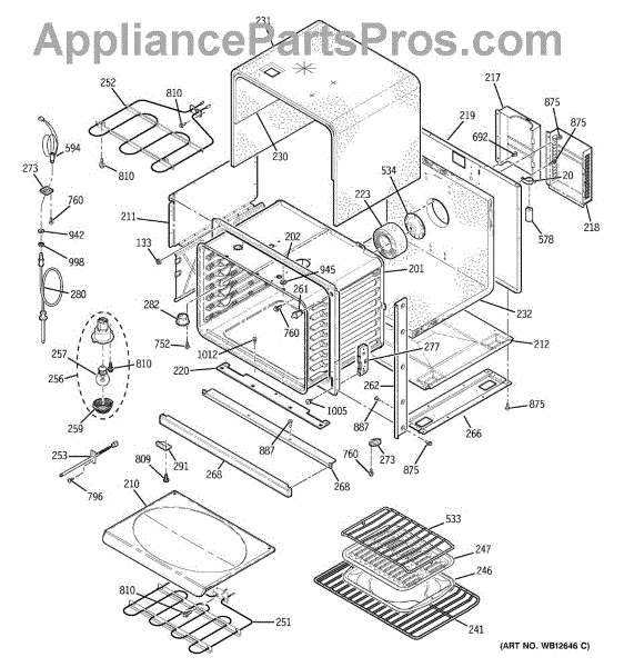 The Broiler Assembly is an OEM replacement part for GE range. Located inside the oven, it houses the heating elements responsible for the broil cooking function. Causes of a bad broiler assembly can include cracked or burnt-out heating elements that no longer ignite, damage from accidentally being cleaned with abrasive chemicals, or warping of metal components from overheating. Symptoms of a bad broiler assembly include: