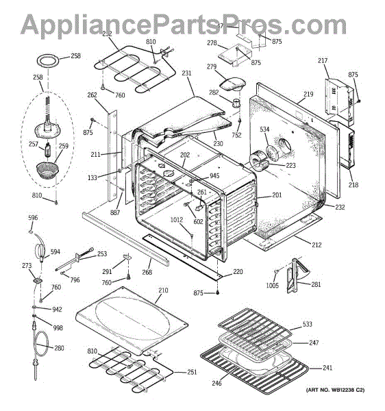 The Broiler Assembly is an OEM replacement part for GE range. Located inside the oven, it houses the heating elements responsible for the broil cooking function. Causes of a bad broiler assembly can include cracked or burnt-out heating elements that no longer ignite, damage from accidentally being cleaned with abrasive chemicals, or warping of metal components from overheating. Symptoms of a bad broiler assembly include: