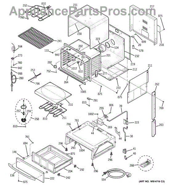 The Broiler Assembly is an OEM replacement part for GE range. Located inside the oven, it houses the heating elements responsible for the broil cooking function. Causes of a bad broiler assembly can include cracked or burnt-out heating elements that no longer ignite, damage from accidentally being cleaned with abrasive chemicals, or warping of metal components from overheating. Symptoms of a bad broiler assembly include: