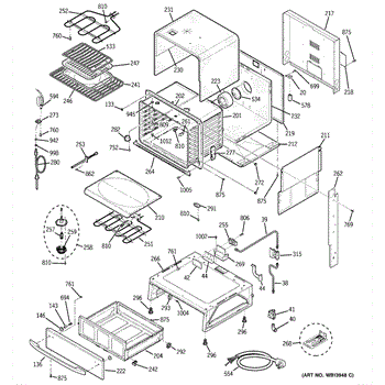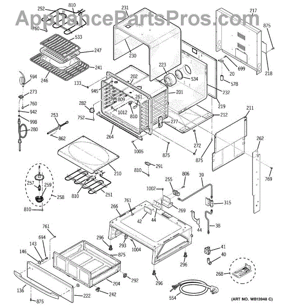 The Broiler Assembly is an OEM replacement part for GE range. Located inside the oven, it houses the heating elements responsible for the broil cooking function. Causes of a bad broiler assembly can include cracked or burnt-out heating elements that no longer ignite, damage from accidentally being cleaned with abrasive chemicals, or warping of metal components from overheating. Symptoms of a bad broiler assembly include: