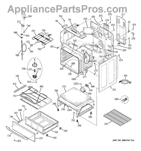 The Rear Door Support is an OEM replacement part for GE ranges. Located at the base of the range, this bracket provides weight-bearing support for the lower oven drawer. It facilitates smooth extension and retraction of the drawer. Causes of faulty support can include cracks or fractures developing over extended use, worn joints unable to sustain drawer weight, or misalignment from repeated opening/closing stress. Symptoms of a bad support include: