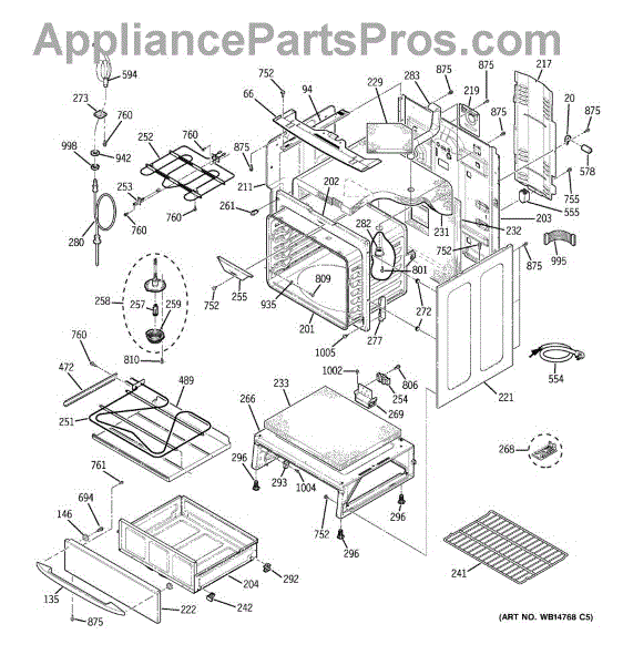 The Rear Door Support is an OEM replacement part for GE ranges. Located at the base of the range, this bracket provides weight-bearing support for the lower oven drawer. It facilitates smooth extension and retraction of the drawer. Causes of faulty support can include cracks or fractures developing over extended use, worn joints unable to sustain drawer weight, or misalignment from repeated opening/closing stress. Symptoms of a bad support include: