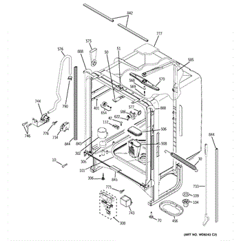 The Sump Filter and Cover is an OEM part for GE dishwashers. It filters out food particles and debris from the water during the dishwashing cycle, preventing the particles from recirculating and depositing on dishes. The cover ensures that the filter stays in place and also aids in the proper flow of water through the dishwasher.