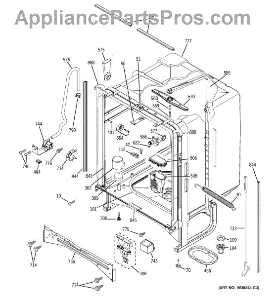 The Sump Filter and Cover is an OEM part for GE dishwashers. It filters out food particles and debris from the water during the dishwashing cycle, preventing the particles from recirculating and depositing on dishes. The cover ensures that the filter stays in place and also aids in the proper flow of water through the dishwasher.