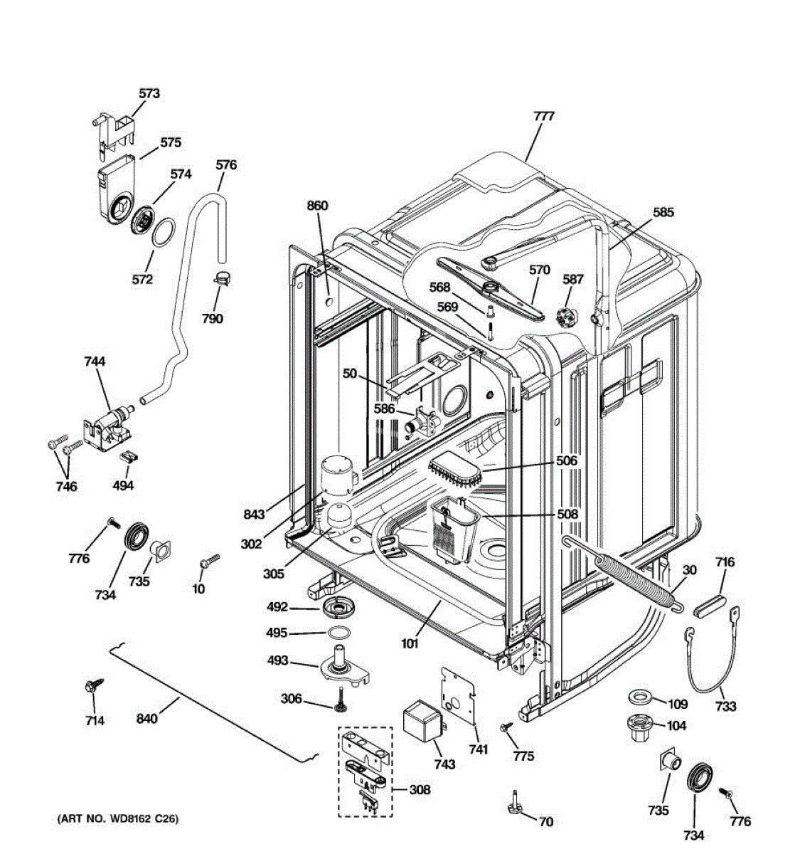 The Gasket Spring is an OEM part for GE dishwashers. It plays a crucial role in maintaining a tight seal around the dishwasher door, ensuring that water does not leak during operation. This spring helps keep the door gasket in place, providing a reliable and consistent seal.