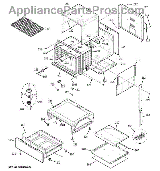 The Rear Door Support is an OEM replacement part for GE ranges. Located at the base of the range, this bracket provides weight-bearing support for the lower oven drawer. It facilitates smooth extension and retraction of the drawer. Causes of faulty support can include cracks or fractures developing over extended use, worn joints unable to sustain drawer weight, or misalignment from repeated opening/closing stress. Symptoms of a bad support include: