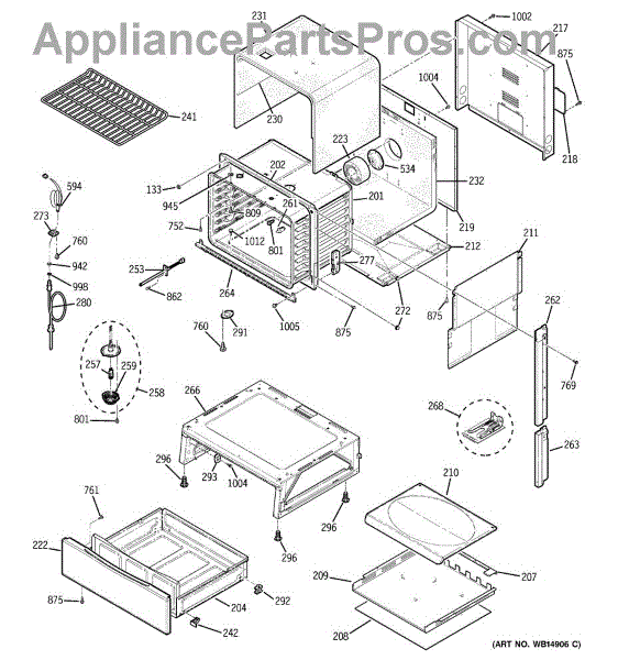 The Rear Door Support is an OEM replacement part for GE ranges. Located at the base of the range, this bracket provides weight-bearing support for the lower oven drawer. It facilitates smooth extension and retraction of the drawer. Causes of faulty support can include cracks or fractures developing over extended use, worn joints unable to sustain drawer weight, or misalignment from repeated opening/closing stress. Symptoms of a bad support include: