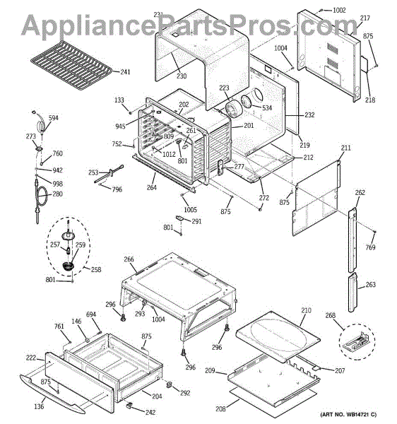 The Rear Door Support is an OEM replacement part for GE ranges. Located at the base of the range, this bracket provides weight-bearing support for the lower oven drawer. It facilitates smooth extension and retraction of the drawer. Causes of faulty support can include cracks or fractures developing over extended use, worn joints unable to sustain drawer weight, or misalignment from repeated opening/closing stress. Symptoms of a bad support include: