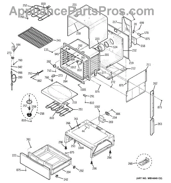 The Broiler Assembly is an OEM replacement part for GE range. Located inside the oven, it houses the heating elements responsible for the broil cooking function. Causes of a bad broiler assembly can include cracked or burnt-out heating elements that no longer ignite, damage from accidentally being cleaned with abrasive chemicals, or warping of metal components from overheating. Symptoms of a bad broiler assembly include:
