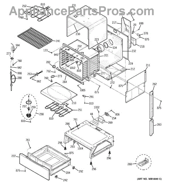The Rear Door Support is an OEM replacement part for GE ranges. Located at the base of the range, this bracket provides weight-bearing support for the lower oven drawer. It facilitates smooth extension and retraction of the drawer. Causes of faulty support can include cracks or fractures developing over extended use, worn joints unable to sustain drawer weight, or misalignment from repeated opening/closing stress. Symptoms of a bad support include: