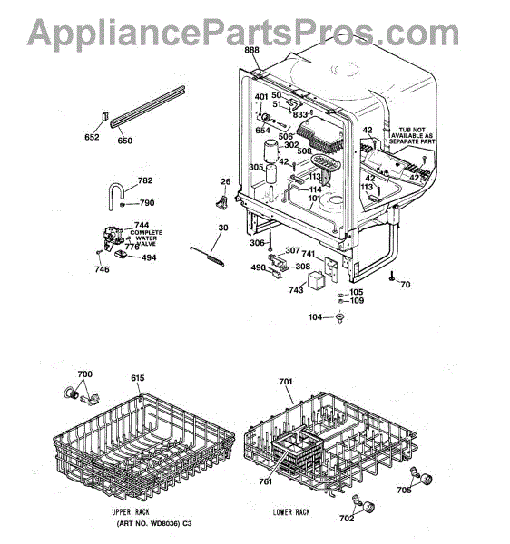 Parts for Ge PSD1000Z00WH: 02 - Body Parts