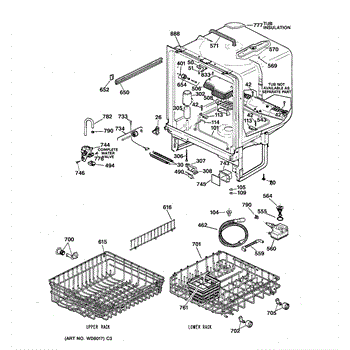 The Lower Dishrack is an OEM part for GE dishwashers. It provides a sturdy shelf for placing pots, pans, plates, and other dishware on the bottom level of the dishwasher interior. The lower dishrack supports dish loads, holding them securely in place during the wash cycles.