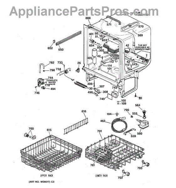 The Tub Corner Baffle is an OEM part for GE dishwashers. It is strategically placed at the corners of the dishwasher tub to prevent water from leaking out during operation. For the left side use WD8X228. Color: Black.