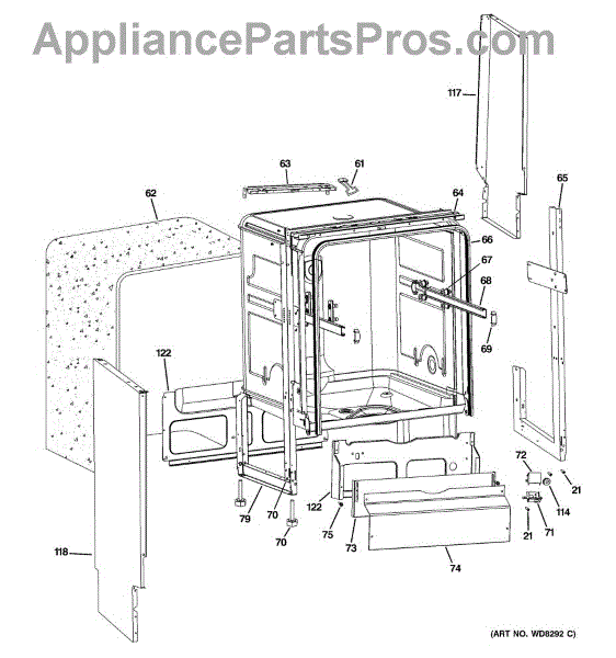 This left side cabinet panel replaces a damaged or missing side cover to restore cabinet strength and appearance. It protects internal components and helps keep the appliance stable and properly enclosed. What it does: