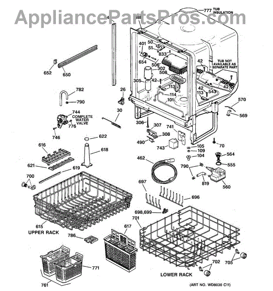 The Upper Rack is an OEM replacement part for GE dishwashers. It provides movable shelf space along the top of the dishwasher interior for washing plates, bowls, and other dishes. The shelves feature an adjustable design that accommodates various sizes and configurations of dishware. Causes of failure include normal wear and tear, accidental impacts that damage shelves or cleaning chemicals stripping away protective coatings. Symptoms of a bad upper rack can include: