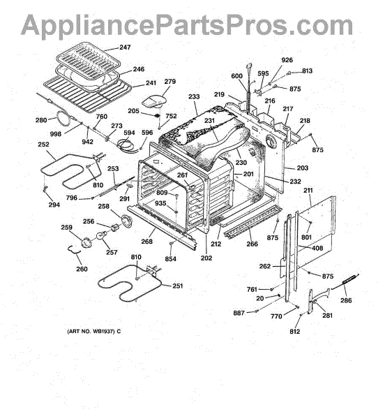 This Back main is the oven's rear chassis panel that supports internal components and protects wiring. It restores structural support and helps prevent contact with hot or moving parts for safe operation. What it does: