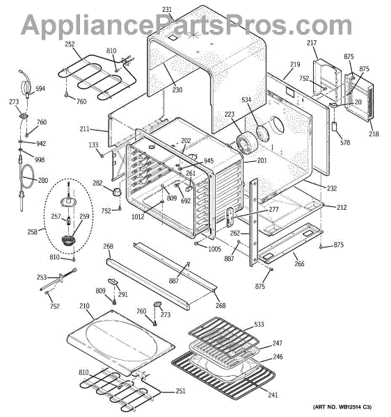 The Broiler Assembly is an OEM replacement part for GE range. Located inside the oven, it houses the heating elements responsible for the broil cooking function. Causes of a bad broiler assembly can include cracked or burnt-out heating elements that no longer ignite, damage from accidentally being cleaned with abrasive chemicals, or warping of metal components from overheating. Symptoms of a bad broiler assembly include: