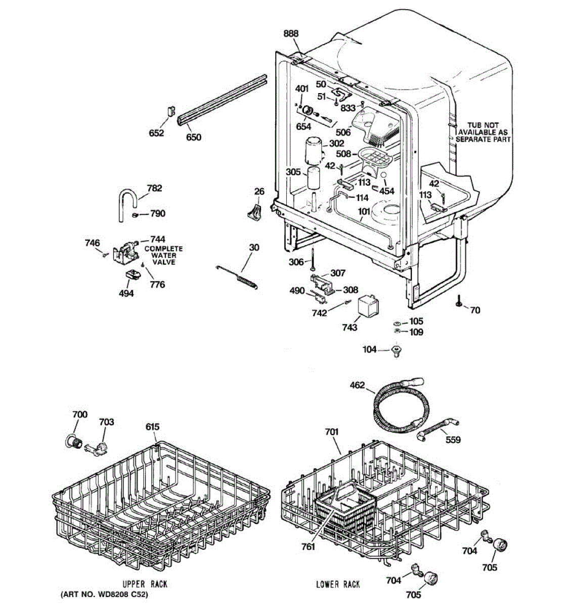 Replacement silverware basket with handle for your dishwasher. Needed when original basket is cracked, broken, or has worn holes that let utensils fall through.