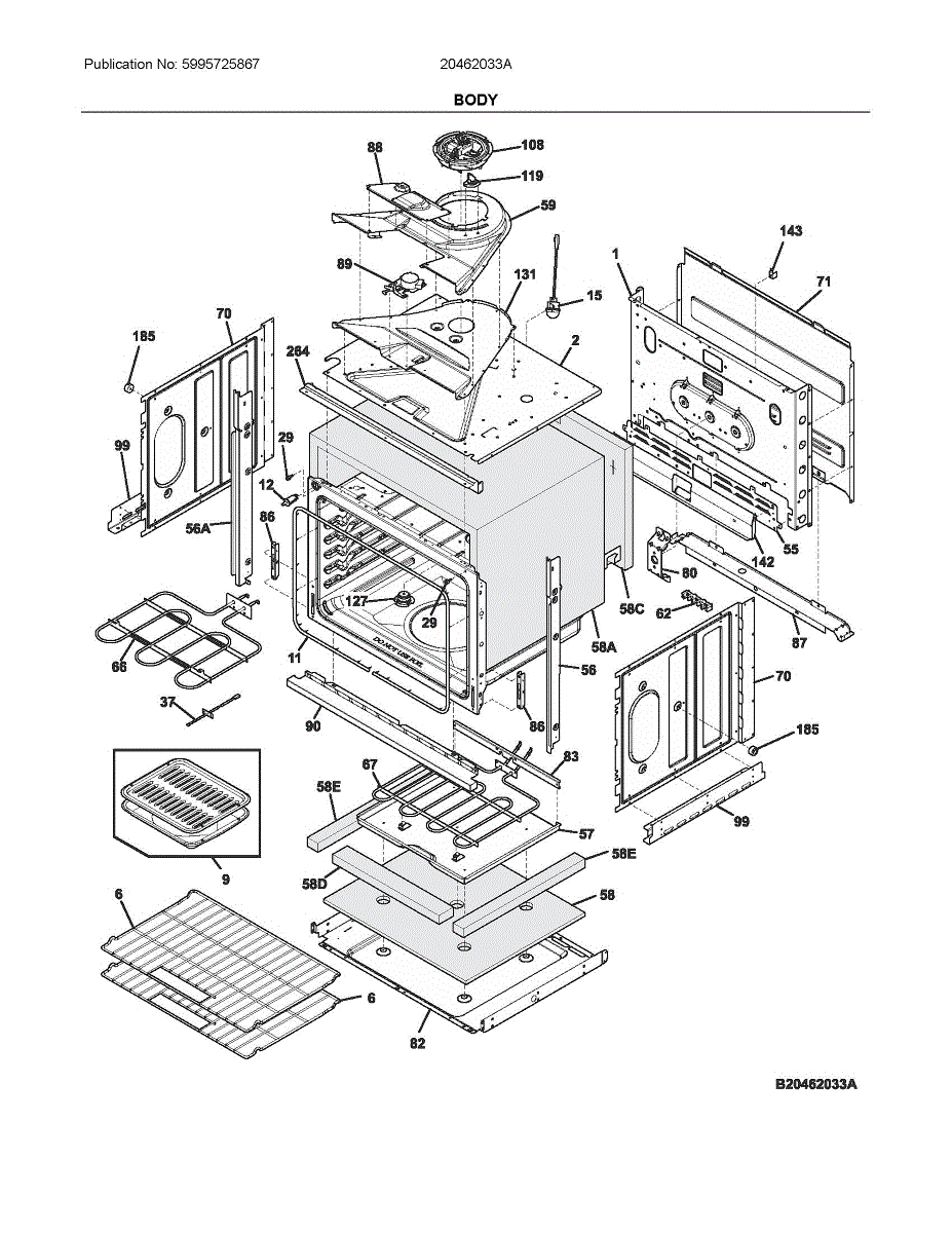 Heat shield for ranges and wall ovens. Protects internal components from excessive heat. Replace if cracked, warped, or damaged to prevent overheating.