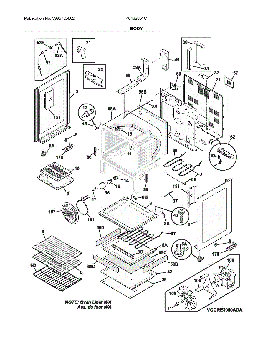 Insulation panel for range oven cabinet that reduces heat transfer and noise. Installs on top and sides. Replace if worn, damaged, or missing.