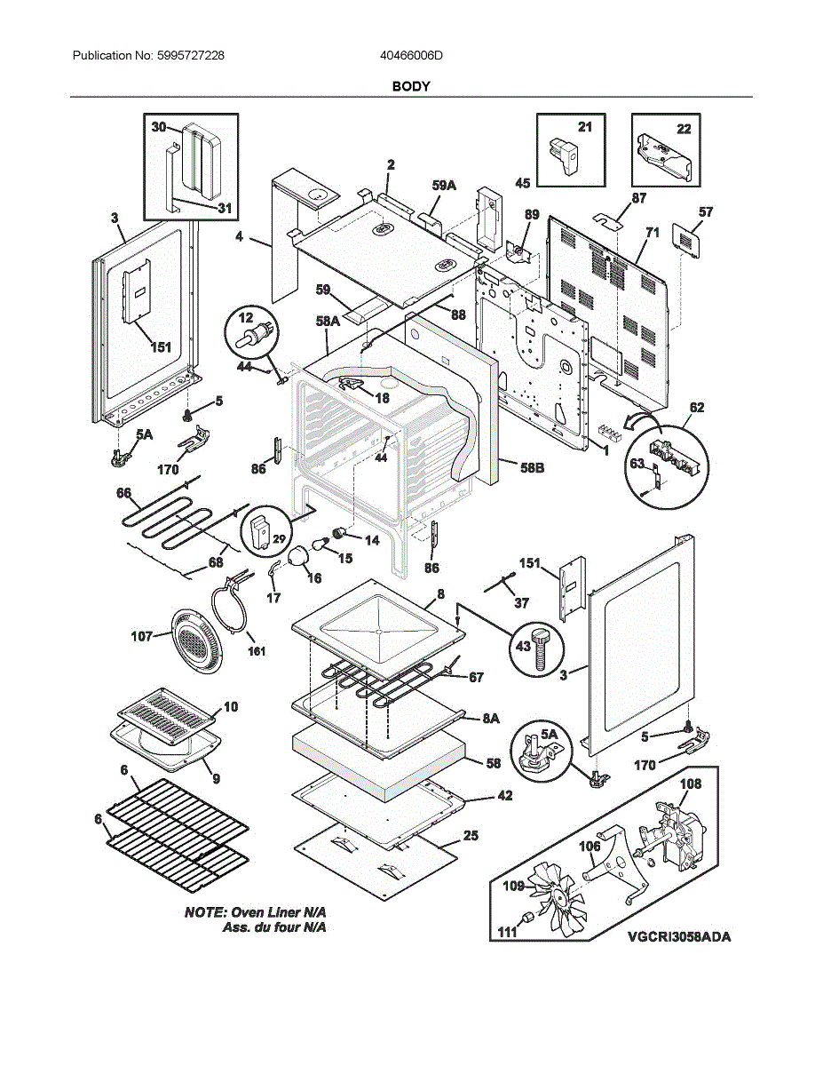 Molded insulation liner that fits inside the range oven cavity. Replace if yours is damaged, compressed, or missing to restore proper heat containment.