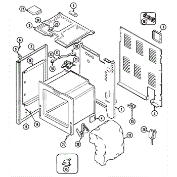 This factory screw secures appliance components to their mounting points. Replace missing, worn, or stripped hardware to restore a tight fit, proper alignment, and quieter operation across the affected assembly.