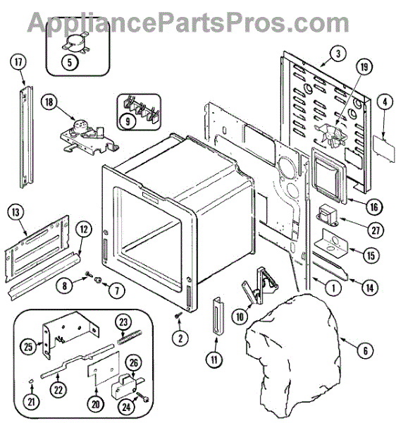 • Access location varies by model; commonly mounted to the oven cavity, plenum, or rear panel