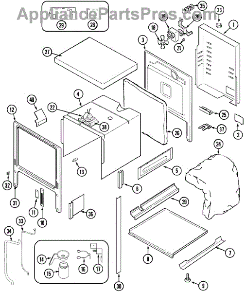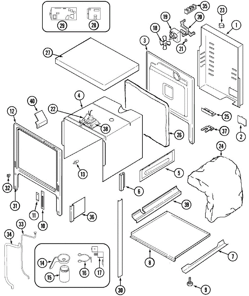 This terminal block is the insulated connection point where the appliance's incoming power ties into the internal wiring. Replacing a heat-damaged or loose block restores a safe, reliable electrical path and helps prevent arcing and intermittent power loss.