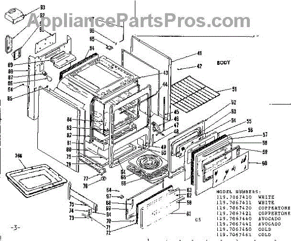 Parts for Kenmore 119.7067440 (1197067440, 119 7067440): Body Parts