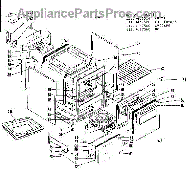 Parts for Kenmore 119.7067510 (1197067510, 119 7067510): Body Parts