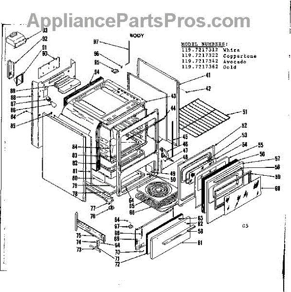 Parts for Kenmore 119.7217322 (1197217322, 119 7217322): Body Parts