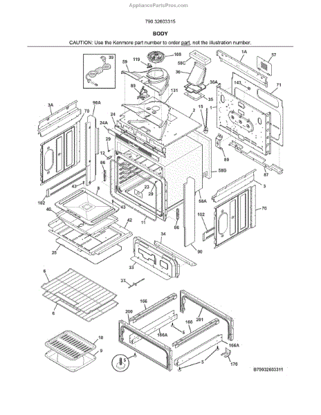 Parts for Kenmore 790.32603315 (79032603315, 790 32603315): Body Parts