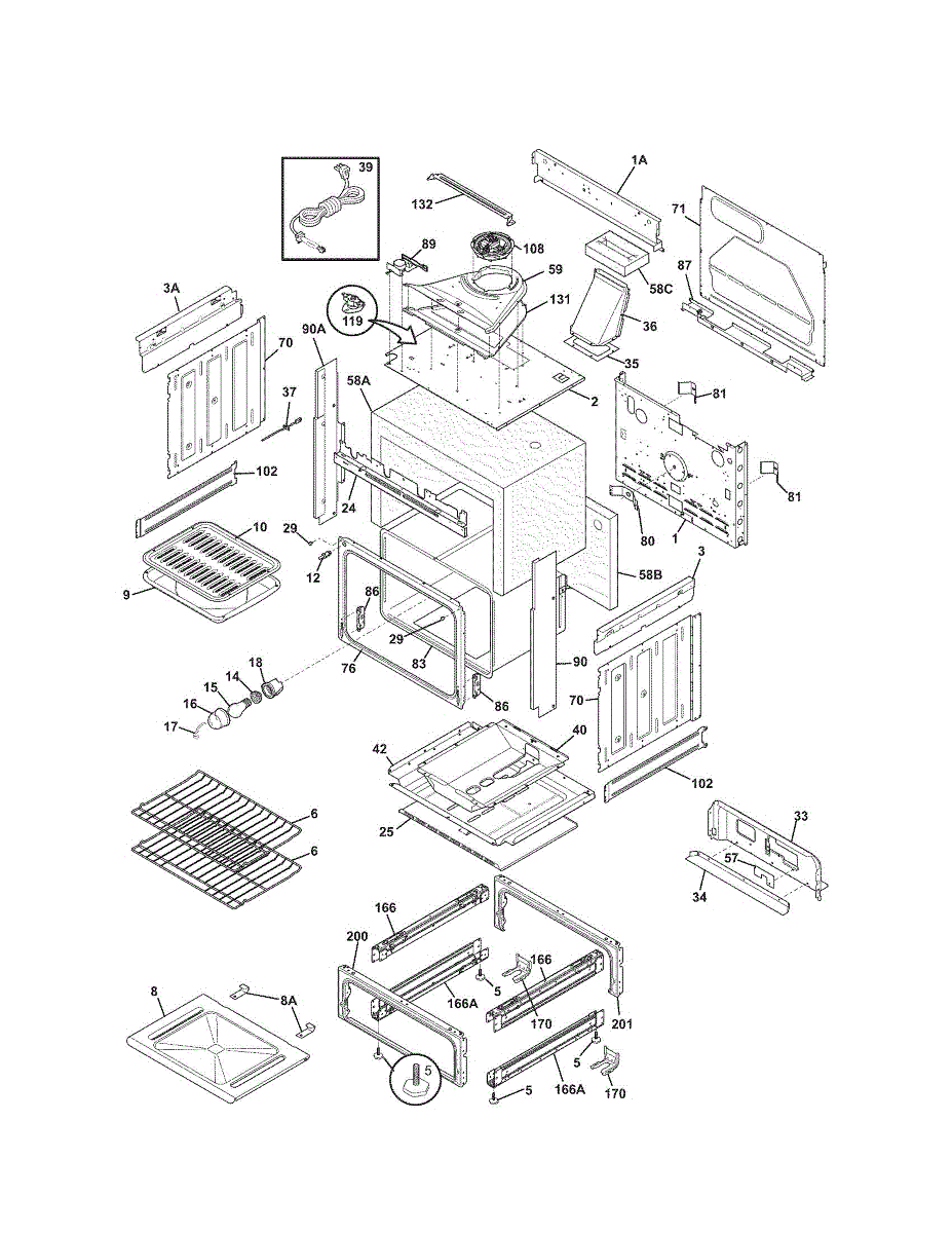 Rear panel back for ovens and ranges. Replaces cracked, damaged, or missing exterior back panels. Essential structural part for cabinet integrity.