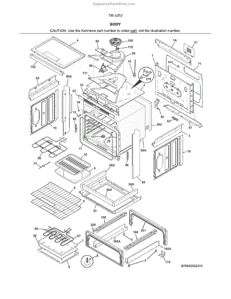 Parts for Kenmore 790.42529317 (79042529317, 790 42529317): Body Parts