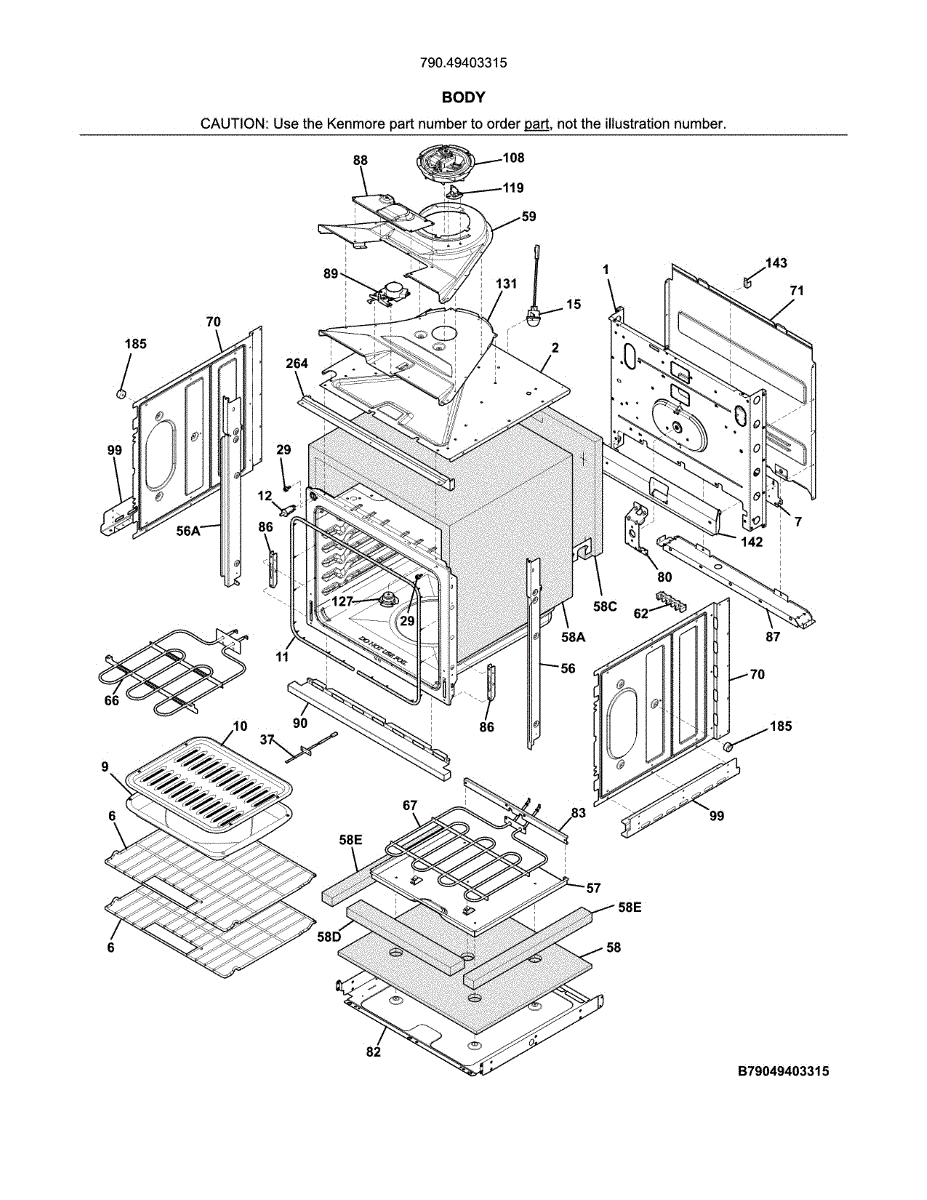 Parts for Kenmore 790.49403315 (79049403315, 790 49403315): Body Parts