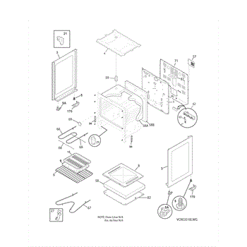 Insulation blanket surrounds the oven cavity to retain heat. Replace if burnt, deteriorated, or damaged by pests to restore proper heat retention.