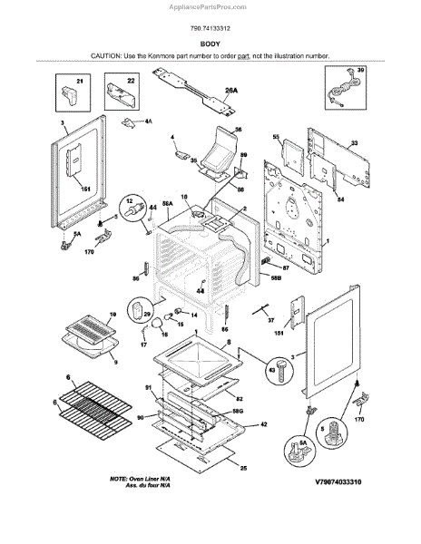 Parts for Kenmore 790.74133312 (79074133312, 790 74133312): Body Parts