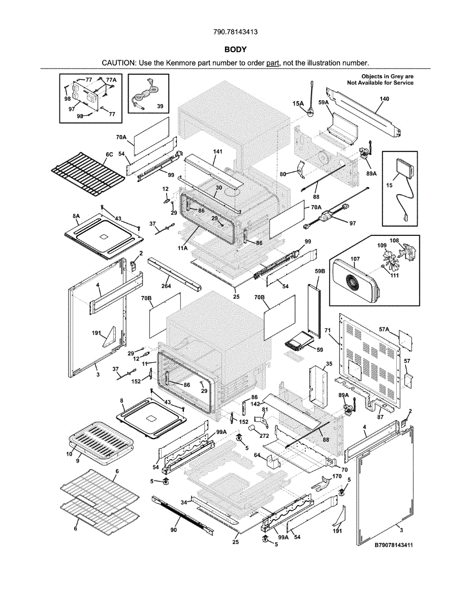 Broiler pan for electric and gas ranges. Installs in oven cavity for broiling. Replace if cracked, warped, rusted, or heavily stained beyond cleaning.