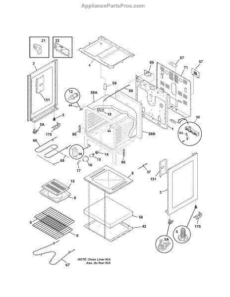 This oven insulation surrounds the oven cavity to retain heat and protect nearby components and cabinetry. Replacing a burnt or deteriorated insulation blanket restores temperature stability and helps keep exterior surfaces cooler on your range during cooking.