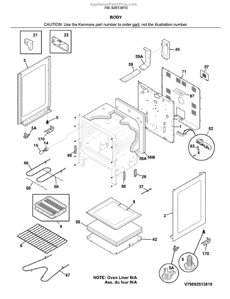 Parts for Kenmore 790.92613810 (79092613810, 790 92613810): Body Parts