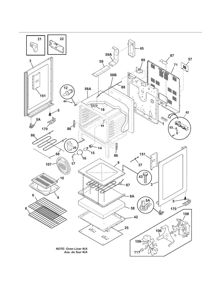 Molded insulation liner that fits inside the range oven cavity. Replace if yours is damaged, compressed, or missing to restore proper heat containment.