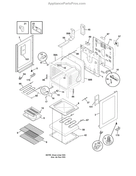 This oven insulation surrounds the oven cavity to retain heat and protect nearby components and cabinetry. Replacing a burnt or deteriorated insulation blanket restores temperature stability and helps keep exterior surfaces cooler on your range during cooking.