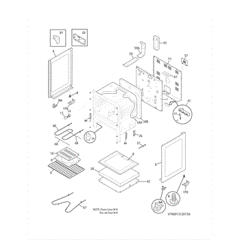 This oven insulation surrounds the oven cavity to retain heat and protect nearby components and cabinetry. Replacing a burnt or deteriorated insulation blanket restores temperature stability and helps keep exterior surfaces cooler on your range during cooking.