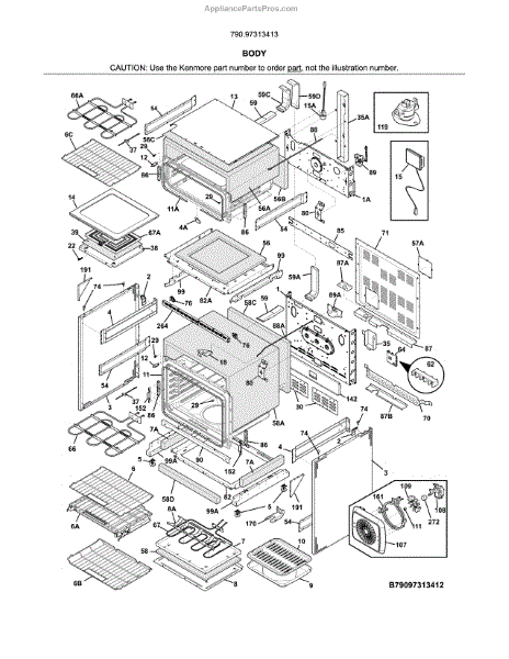 Broiler pan for electric and gas ranges. Installs in oven cavity for broiling. Replace if cracked, warped, rusted, or heavily stained beyond cleaning.