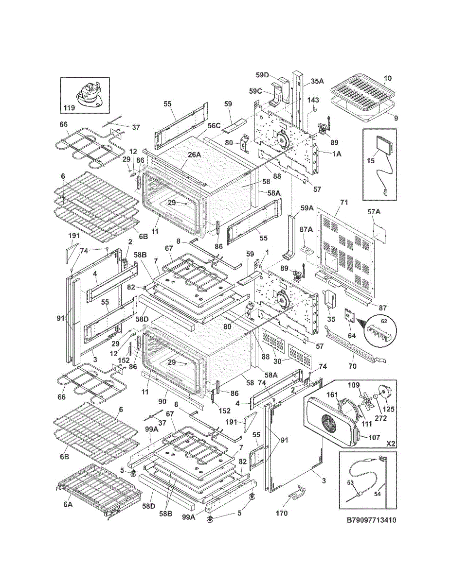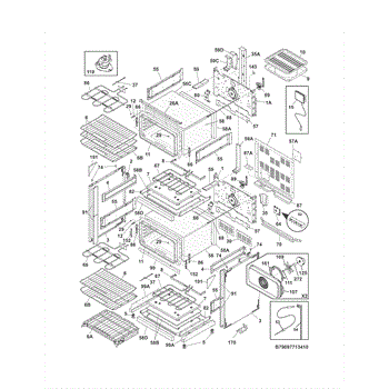 Wiring harness assembly for wall ovens. Routes power between internal components. Replace if damaged, frayed, or burnt to restore connections.